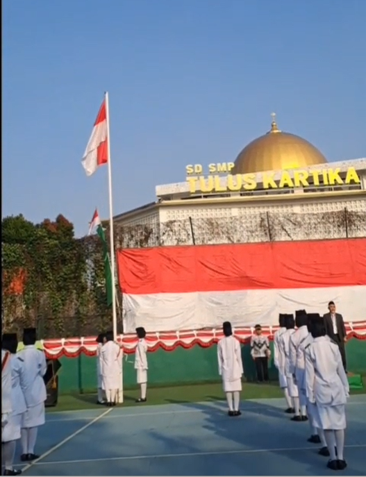 Pada tanggal 17 Agustus 2025 yang lalu, Pasukan Pengibar Bendera SMP Tulus Kartika dengan bangga berhasil mengibarkan bendera dengan khidmat, elegan dan rapi. Setelah berlatih dengan keras selamat berbulan bulan, kali ini bersama dengan adik adik dari SD Tulus Kartika yang masuk dalam barisan PASKIBRA, Upacara yang dipimpin oleh Arya sebagai Komandan Upacara, dapat diselenggarakan dengan baik sekali.