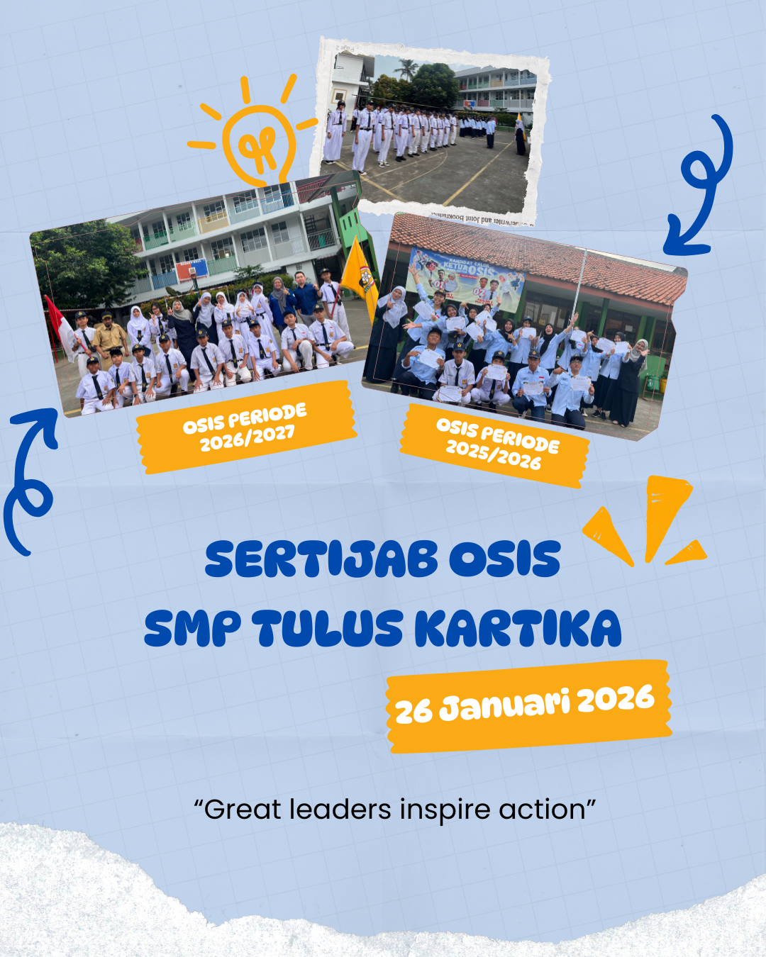 Selamat mengemban amanah kepada pengurus OSIS periode 2026/2027—melangkahlah dengan semangat, junjung tinggi integritas, dan terus berkarya demi SMP Tulus Kartika yang lebih berprestasi.